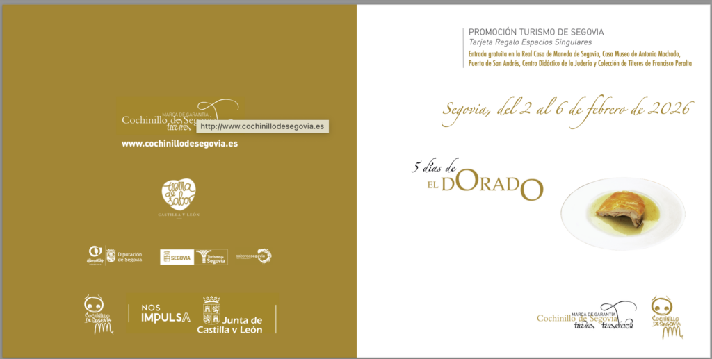 Este año celebraremos la primera semana de febrero de la mano de Procose y Turismo de Segovia una nueva edición de los 5 Días del Dorado, una oportunidad única en España para disfrutar del auténtico cochinillo con Marca de Garantía a mitad de precio. Las reservas ya están abiertas.
